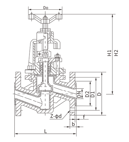 | 公稱通徑(DN) | L | D | D1 | D2 | b | f | H | H1 | D0 | Z-φd |